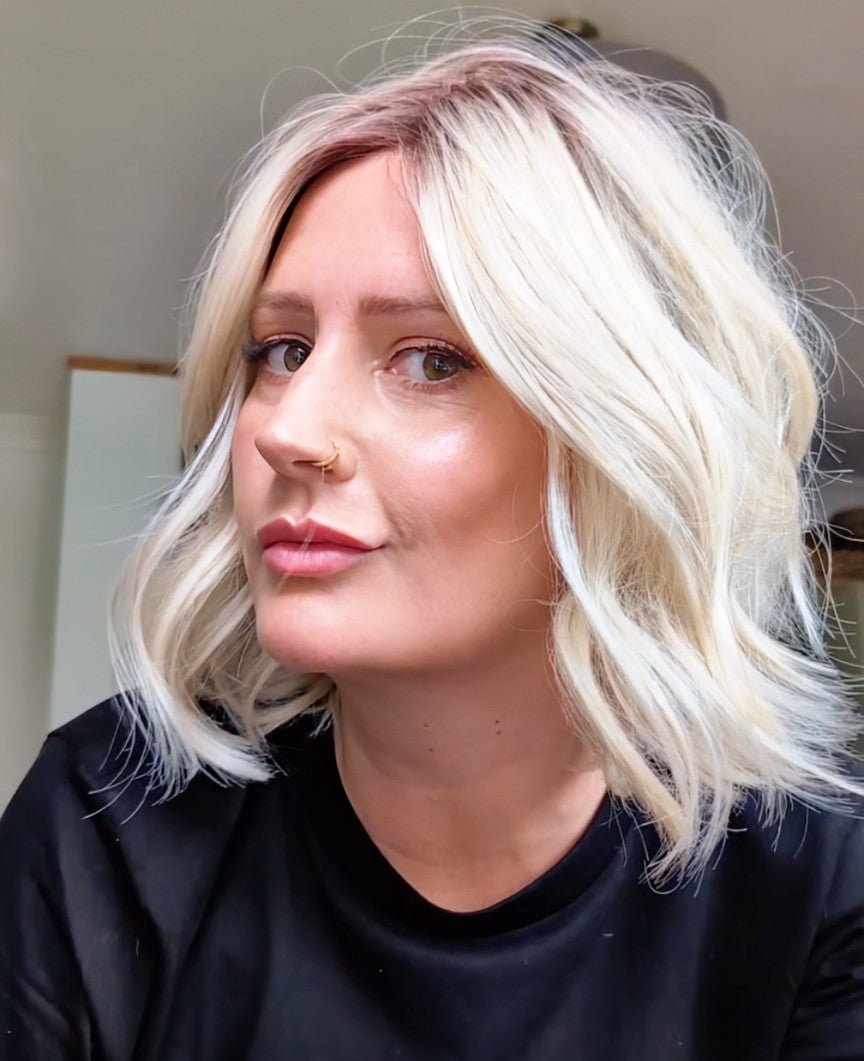Celeste - Bright, chic, and full of movement, Celeste is a modern classic. It's platinum blonde shade with a soft ash root adds natural depth, while the above shoulder length waves create a fresh, playful finish that frames the face beautifully. Crafted with a hand tied monofilament top and open wefted back, Celeste stays light and breathable while offering the realism of natural growth. With soft ear tabs, silicone non-slip band, and velcro adjustable straps, it provides both comfort and security for cap sizes 20.5-22.5